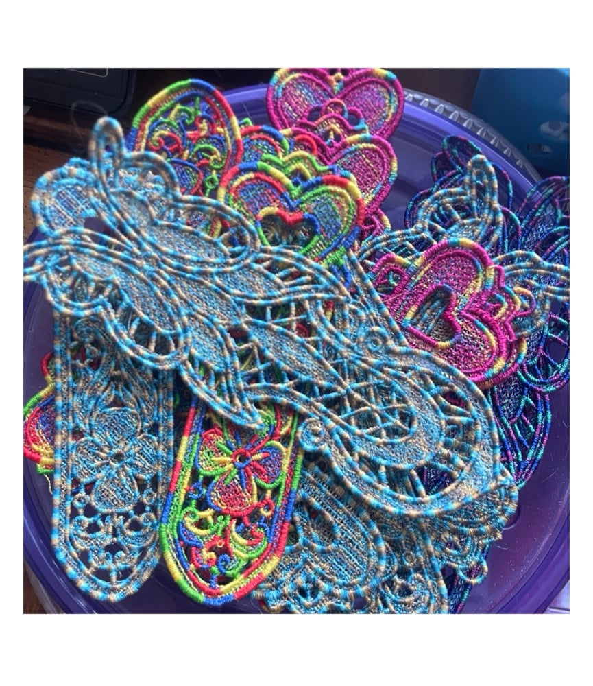 Each are approximately 8 inches. Made from premium embroidery thread, non fading. Made to last. Book after book! Plenty to choose from to keep your reading organized.
